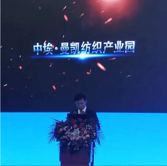 2017年9月7日,宁夏曼凯投资有限公司董事长马耀进先生在中国-阿拉伯国家博览会(中埃投资贸易推介会)上,向到访各国嘉宾、中国相关领导介绍了中埃·曼凯纺织产业园。