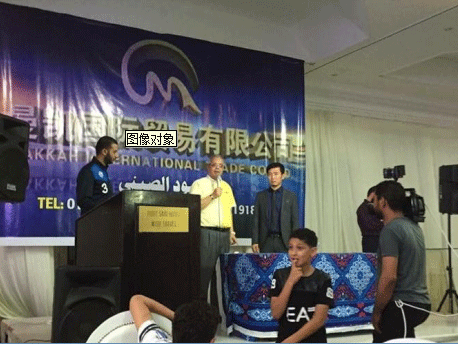 2018年5月9日,曼凯考察团到访项目所在地,参观项目施工现场萨达特管理委员会副主席出席会场。