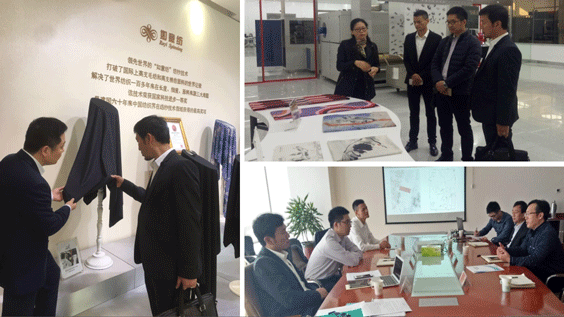 由宁夏自治区商务厅对外投资处肖永刚处长带队,宁夏曼凯投资有限公司到访山东如意纺织集团。曼凯投资详细介绍了中埃·曼凯纺织产业园项目,随即由如意纺相关领导陪同下,参观了如意集团研发中心、生产车间。