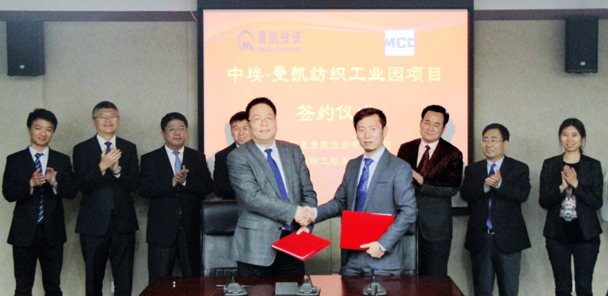 2018年5月,曼凯投资与中国中冶在京签订中埃·曼凯纺织产业园项目工程总承包加融资协议。