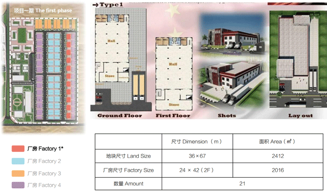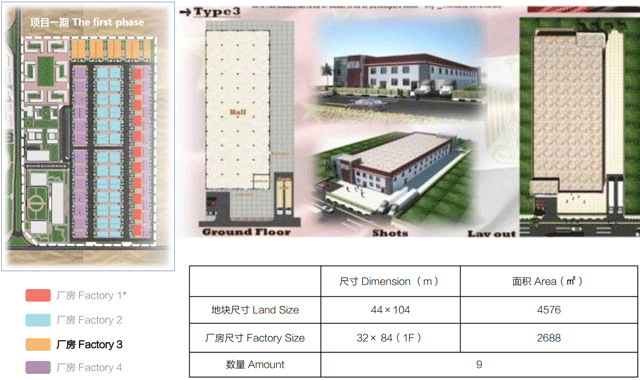 本次招商启动区域为:项目一期。合计厂房150栋,标准厂房户型4种。规划用地面积60万平方米。