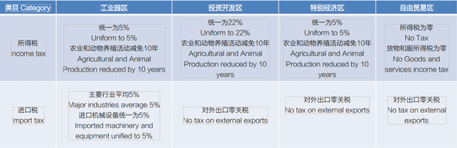埃及方面规定,《埃及新投资法》(2017年5月)生效后设立的投资项目,根据投资区域,按照如下规定享受减税的投资激励:
