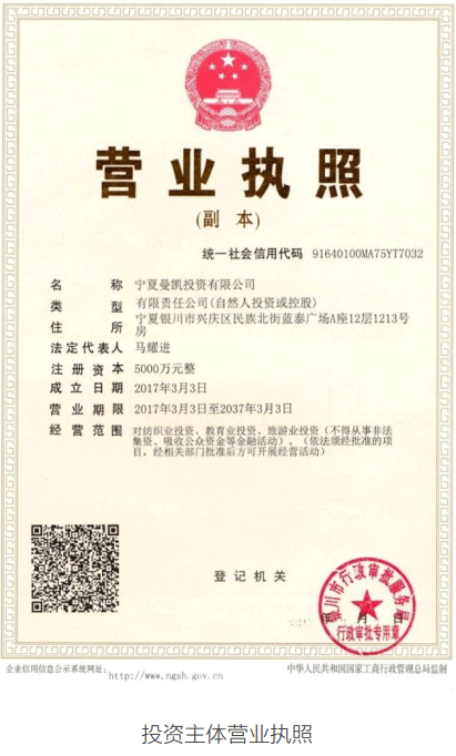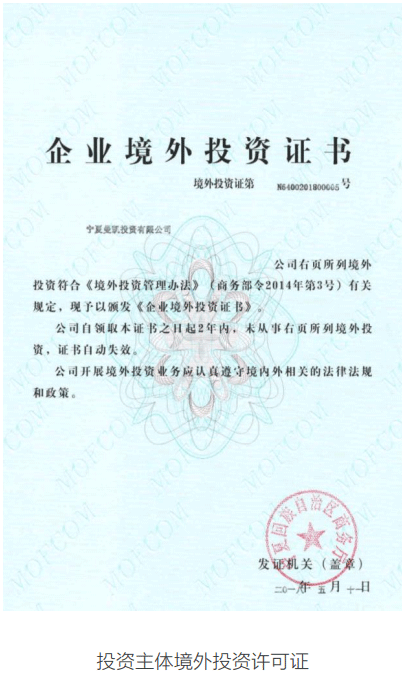 曼凯投资已在宁夏当地商务部门备案,取得企业境外投资证书。