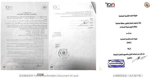 2017年11月8日,经过多次论证,最终确定中埃·曼凯纺织产业园落户萨达特工业城,并与埃及工业发展总局签署《土地购买意向协议》。