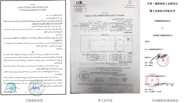 2018年4月,与埃及工业发展总局签订土地产权买卖协议后,随即又与埃及武装工程管理局签署产业园区一期项目施工协议。